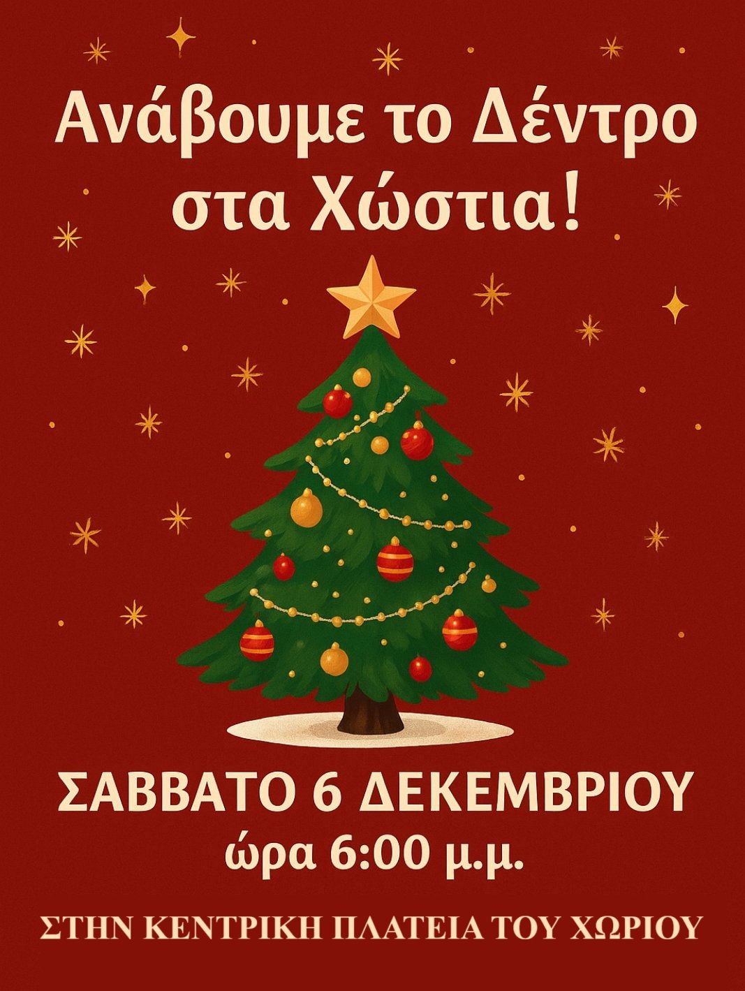 Ανάβουμε το χριστουγεννιάτικο δέντρο στα Χώστια – Δήμος Θηβαίων