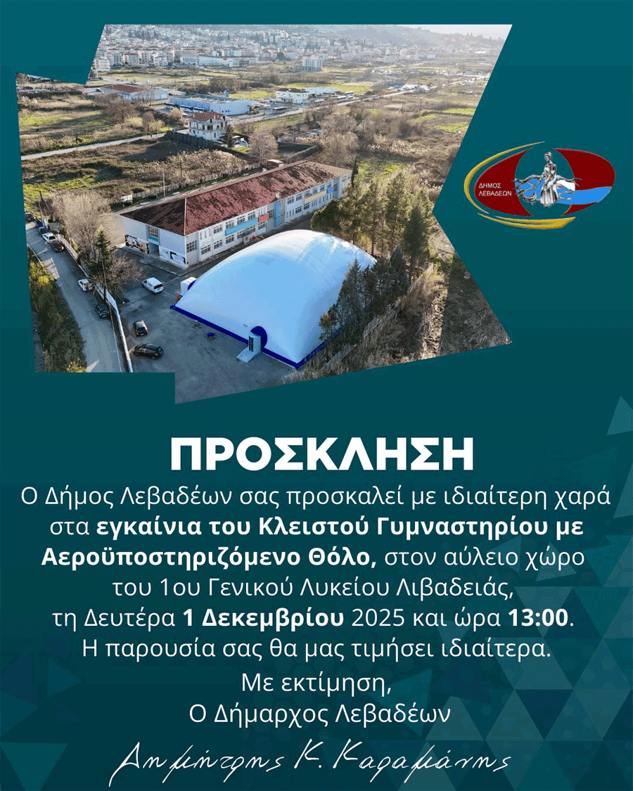 Εγκαίνια στο νέο κλειστό γυμναστήριο Λιβαδειάς με αεροϋποστηριζόμενο θόλο