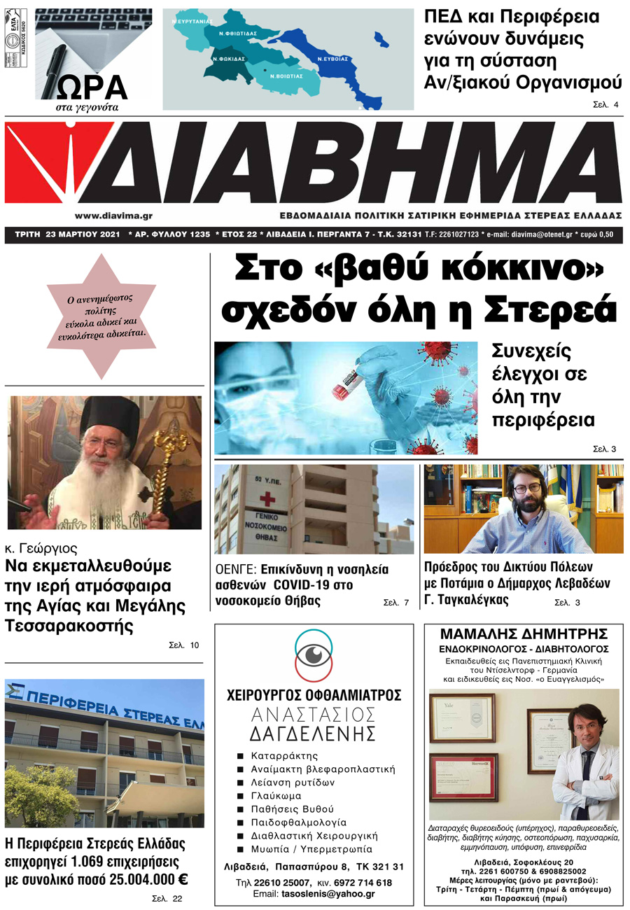 Ενημέρωση “ΔΙΑΒΗΜΑ”, Βοιωτία και Στερεά Ελλάδα. Φύλ. 1235. Τρίτη 23/3/2020.