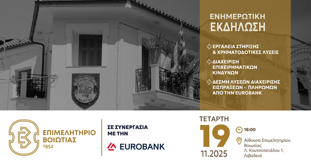 Ενημερωτική Εκδήλωση του Επιμελητηρίου Βοιωτίας, σε συνεργασία με την Eurobank, για την υποστήριξη των μικρομεσαίων επιχειρήσεων