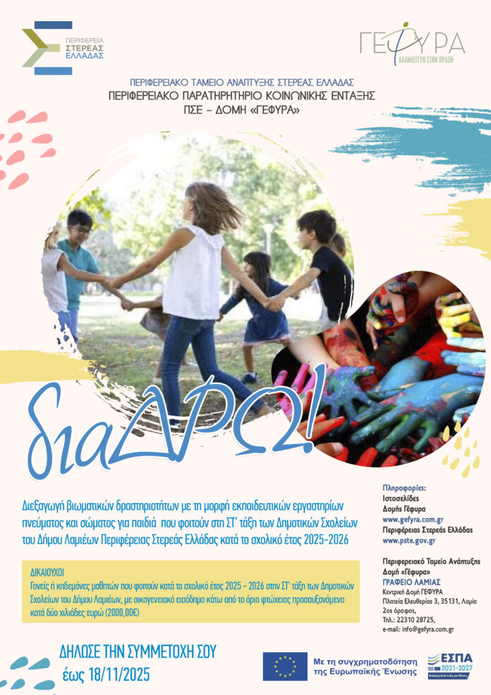 Δημοτικών Σχολείων του Δήμου Λαμιέων της Π.Ε Φθιώτιδας και διαβιούν κάτω από το