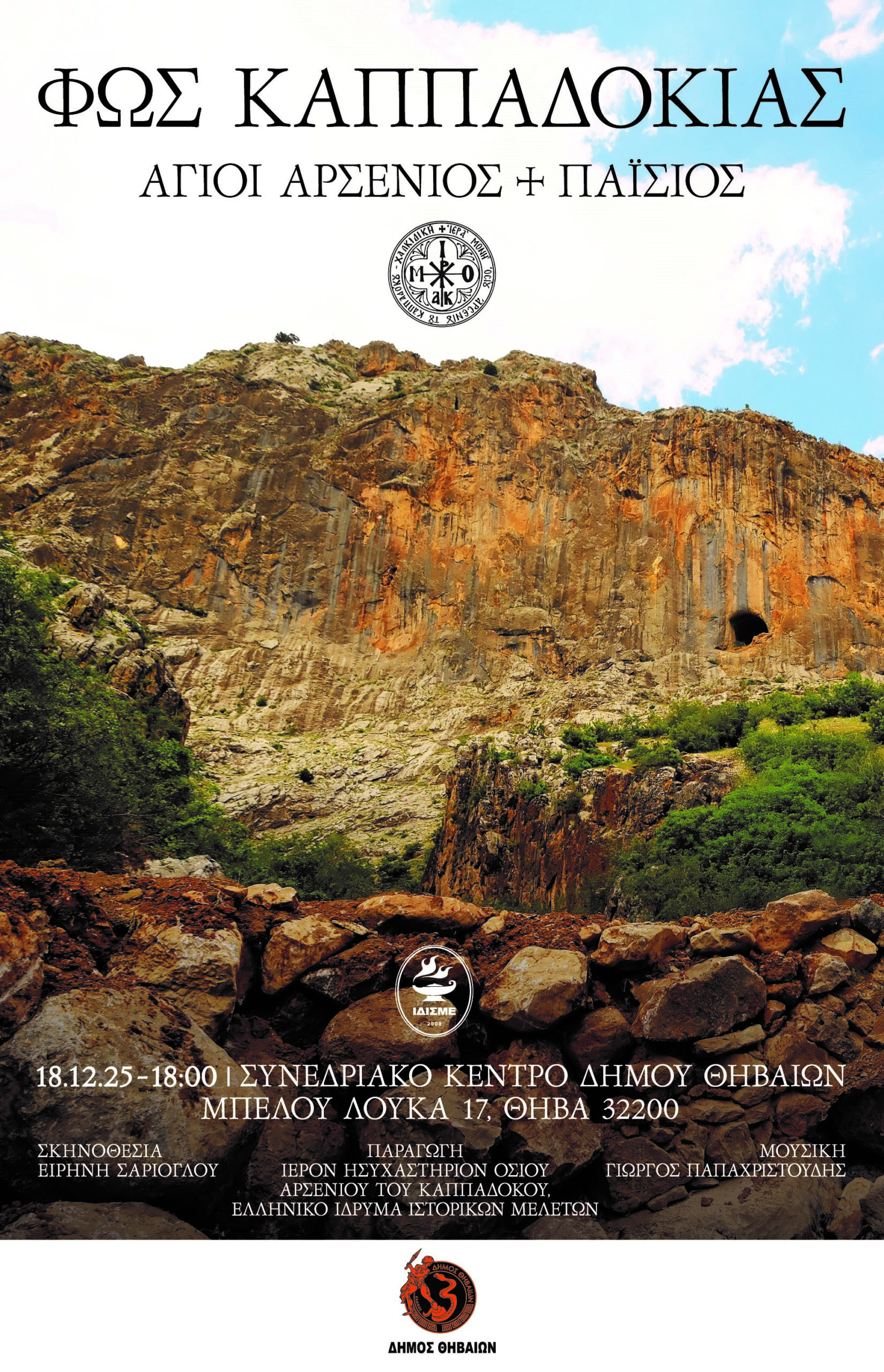 Eκδήλωση προβολής Ντοκυμαντέρ “Φως Καππαδοκίας – Άγιοι Αρσένιος & Παϊσιος” Πέμπτη 18/12/2025, 18:00 στο Συνεδριακό Κέντρο