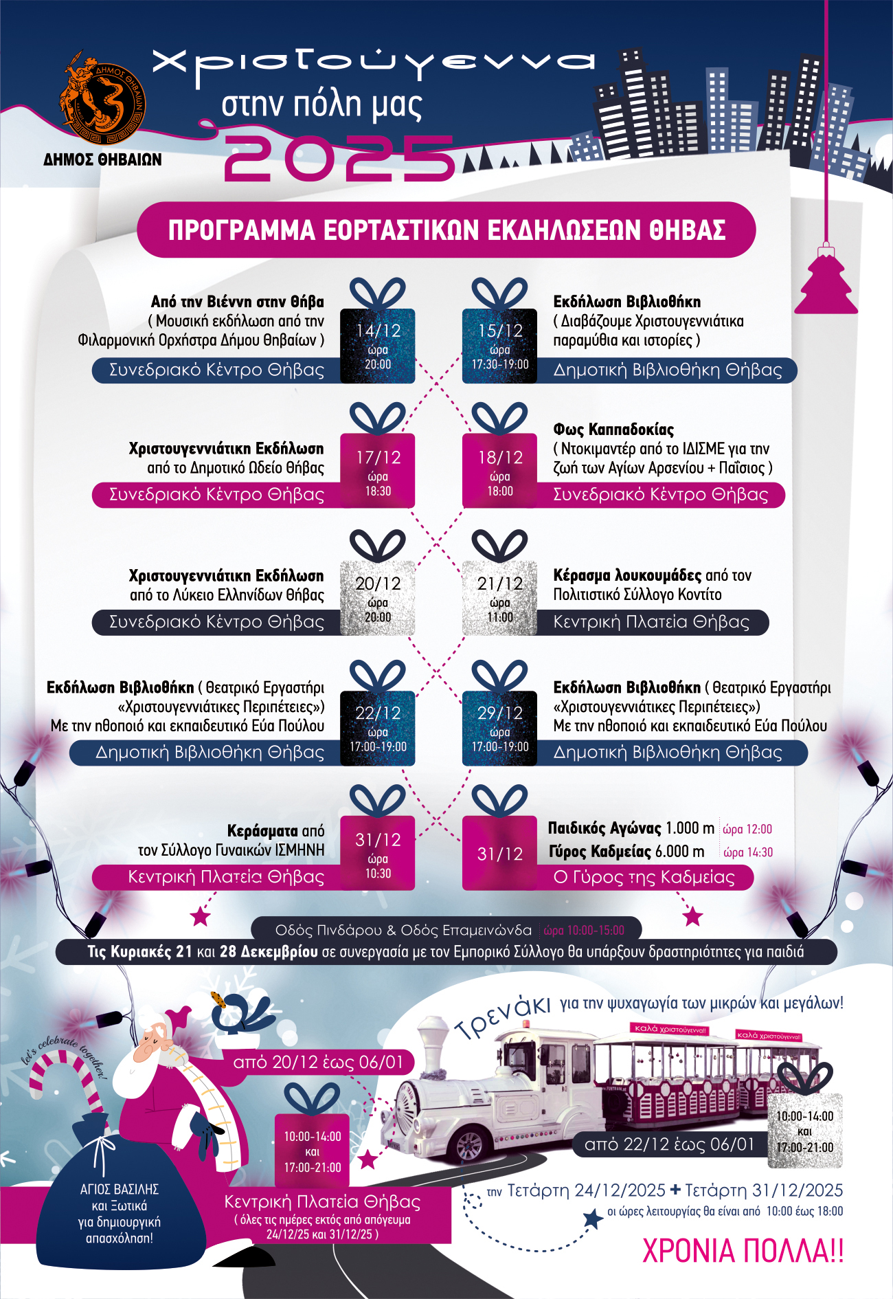 Χριστούγεννα στην πόλη μας! Πρόγραμμα Εορταστικών Εκδηλώσεων Θήβας 2025