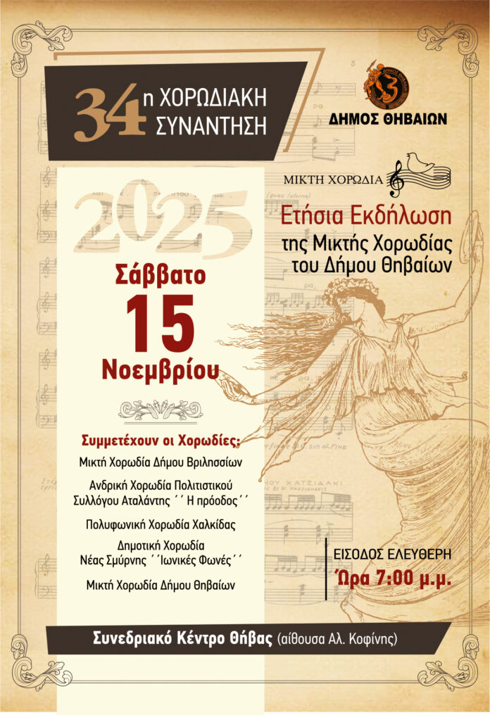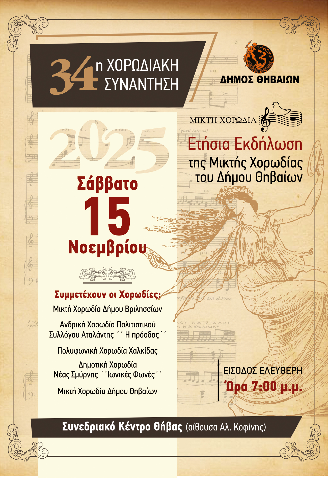 34η Χορωδιακή Συνάντηση – Σάββατο 15 Νοεμβρίου 2025 , 7:00 μ.μ.